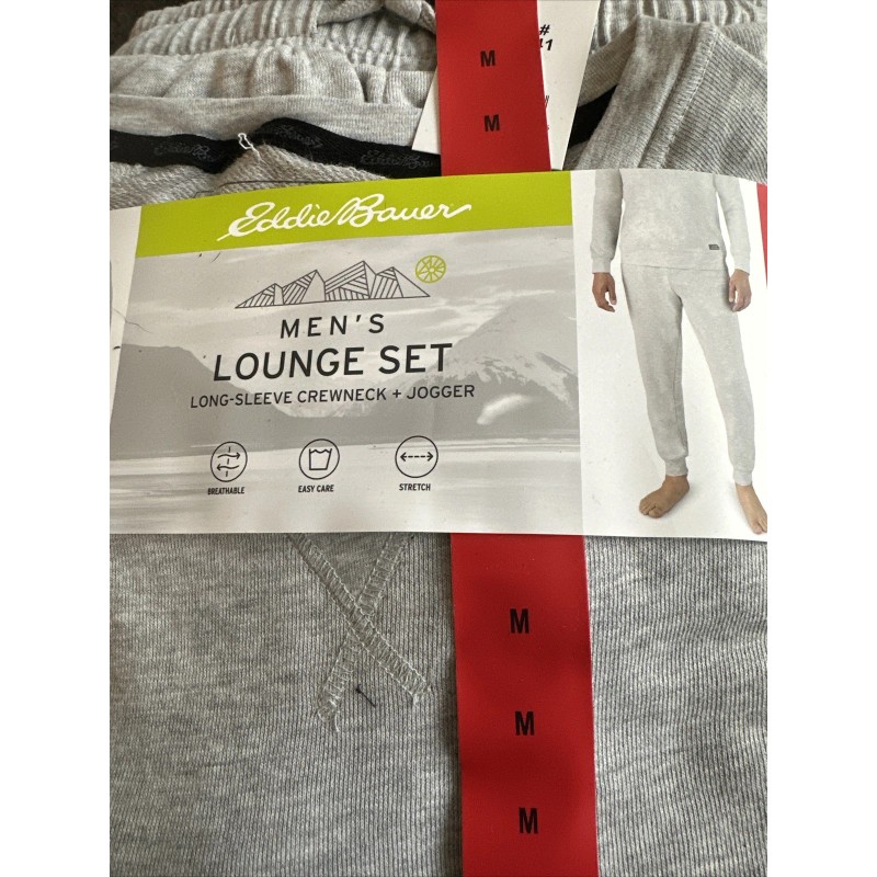 Eddie Bauer NWT Eddie Bauer Mens 2-Piece Lounge Set Top & Jogger Pants (Light Gray) Medium