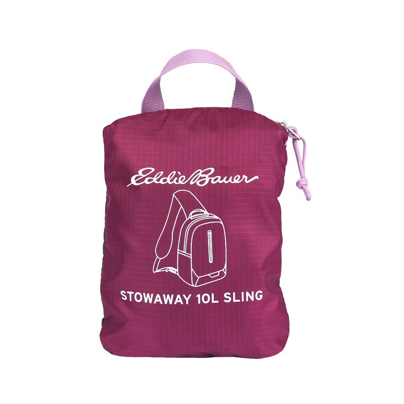 - PACKABLE: Stowaway design allows this Eddie Bauer Sling to pack into its own pocket for easy transport. Stowed: 9" x 6.75"