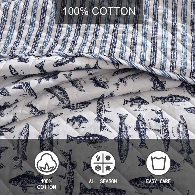 Eddie Bauer - Twin Quilt Set, Reversible Bedding with Matching Sham, Silky Smooth & Breathable, Oeko-Tex Certified, Dorm Essentials (Wes Fish Blue)