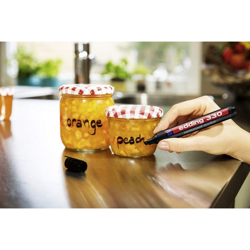 - edding 330 permanent marker pens are available in 10 intense colours; refillable