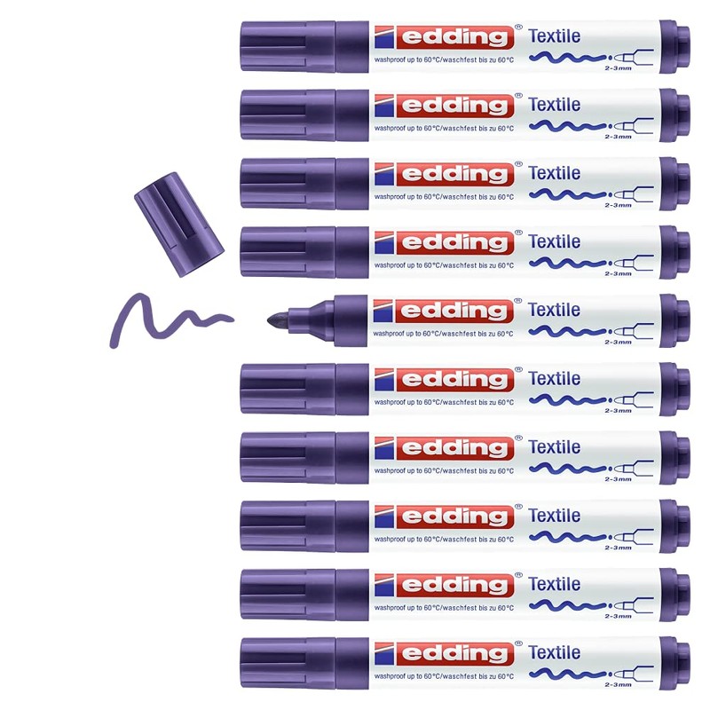 - The edding textile markers and pens are available in 20 bright colours; the thin edding 4600 textile pen is suitable for fine lines