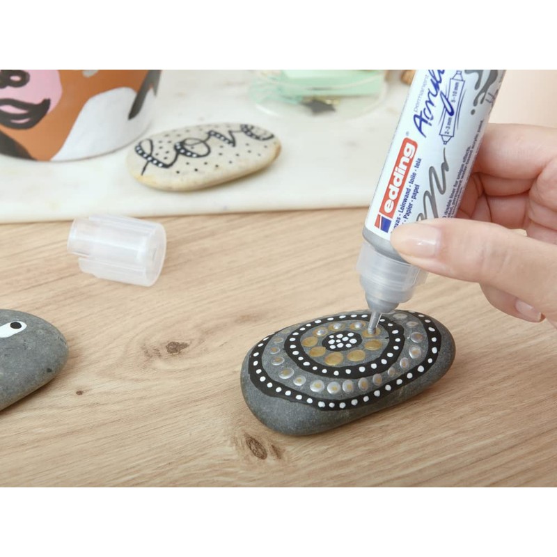 • Innovative, pen-shaped tube with 2 different sized tips for endless colouring fun - on canvas, acrylic paper, wood and terracotta