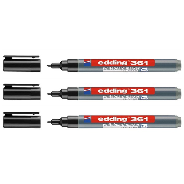 EDDING Pack of 3 Whiteboard Markers 361 Black Fine Tip 1 mm