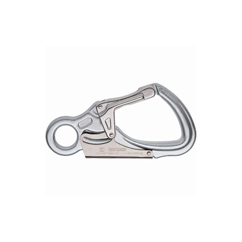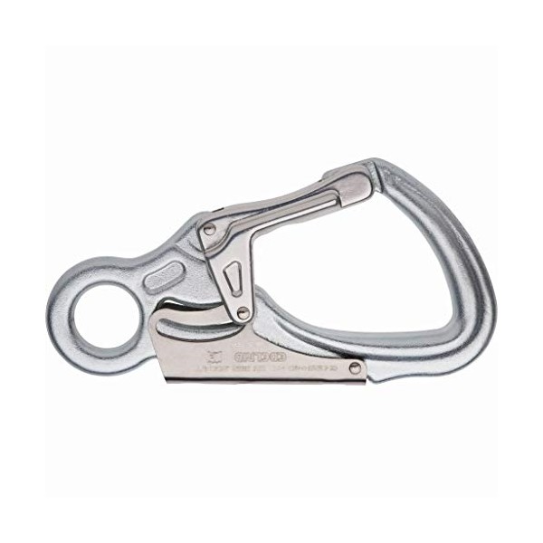 - Robust steel carabiner with palm squeeze mechanism for use in PPE systems.