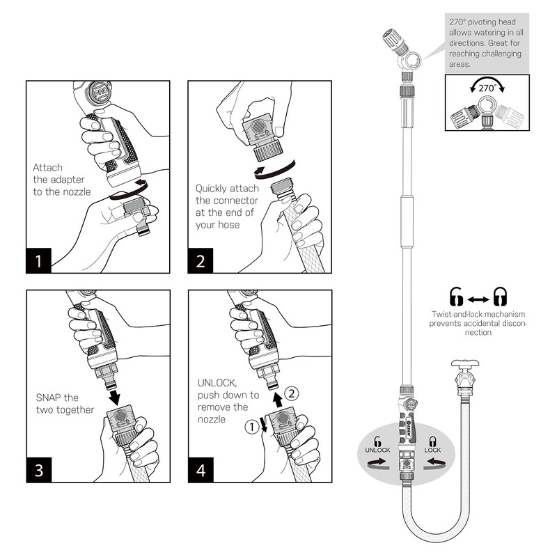 - 4 spray patterns (Turbo, Jet, Flat, and Cone)