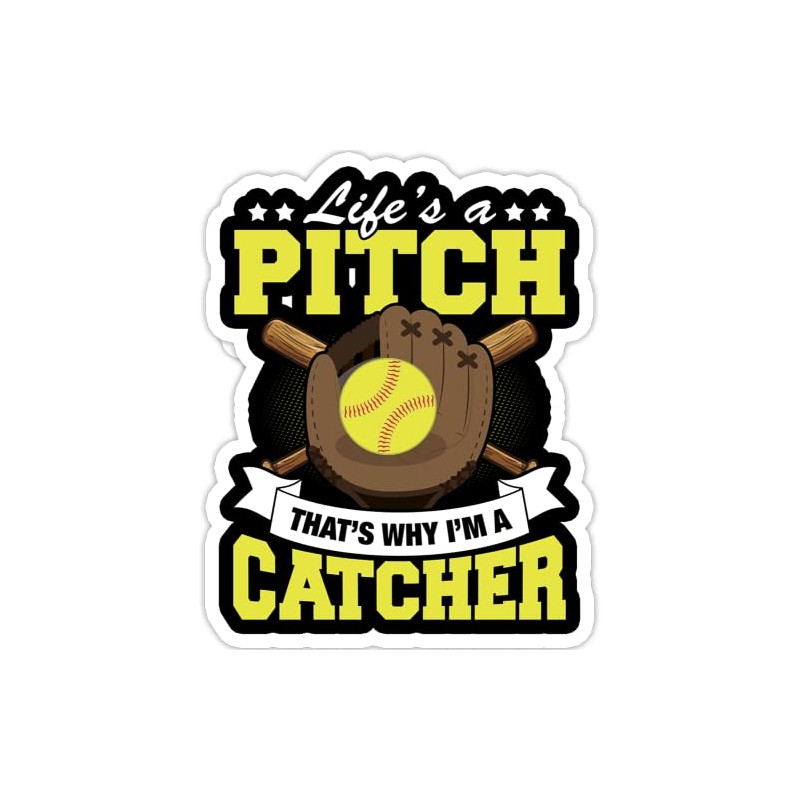 - Softball Catcher Player Team Sport Fielding Gloves Ball- 4x3 Vinyl Stickers, Laptop Decal, Water Bottle Sticker (Set of 3)