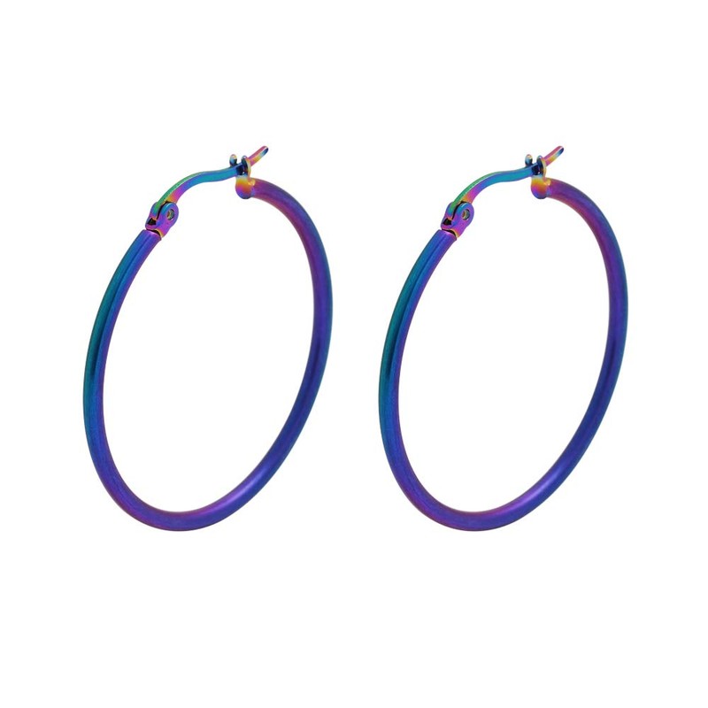 Edforce Stainless Steel Rounded Hoops Earrings (20mm-60mm Diameter) (Rainbow 30mm)