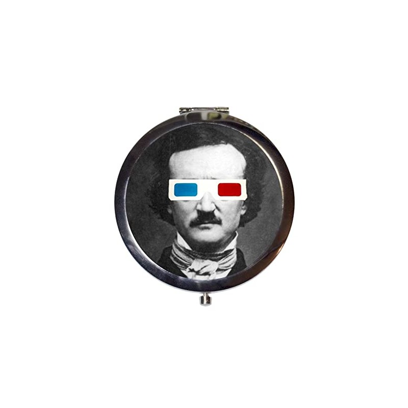 Edgar Allan Poe Compact Mirror 3D Glasses Pop Surrealism Goth Author the Raven Literature Make Up Pocket Mirror for Cosmetics