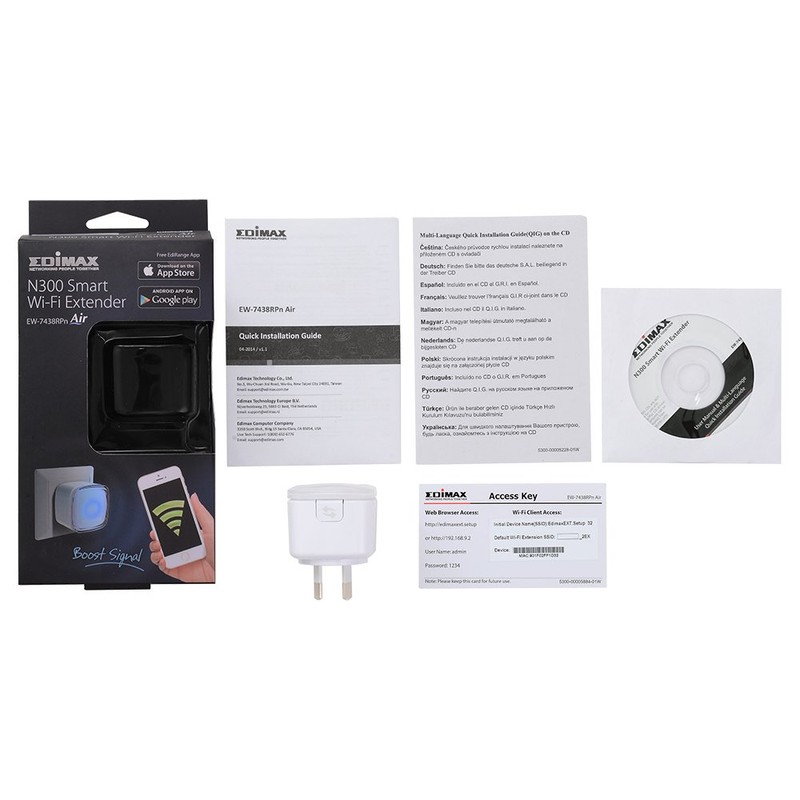 Edimax EW-7438RPn Air - network extenders (0 - 40 °C, 10 - 90%, IEEE 802.11b, IEEE 802.11g, IEEE 802.11n, FCC, CE, 802.11b, 802.11g, 802.11n, 50/60 Hz)