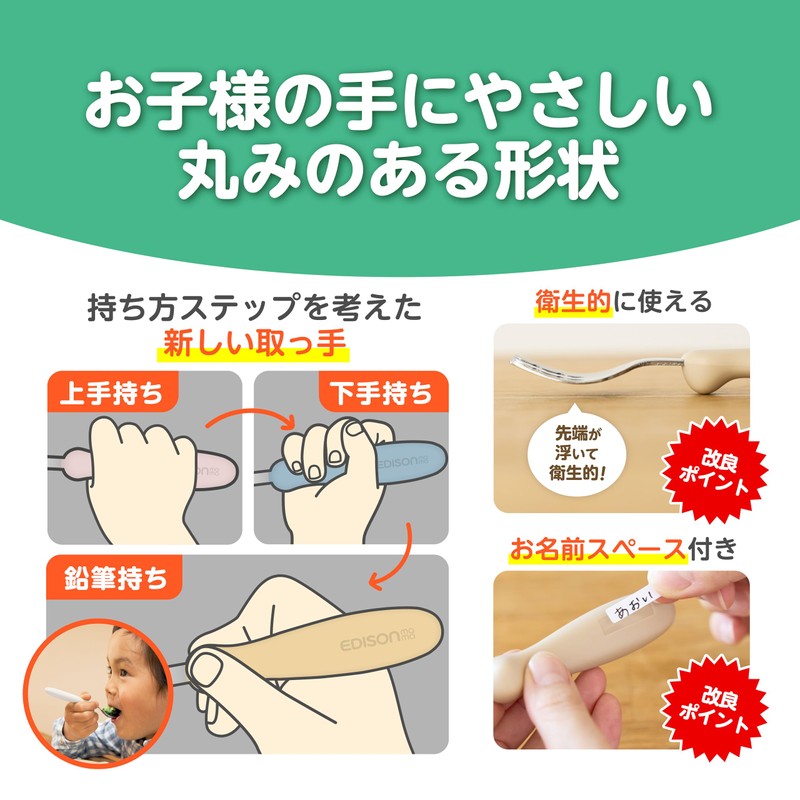 • こぼさずひとりで最後まで食べられるフォーク&スプーン