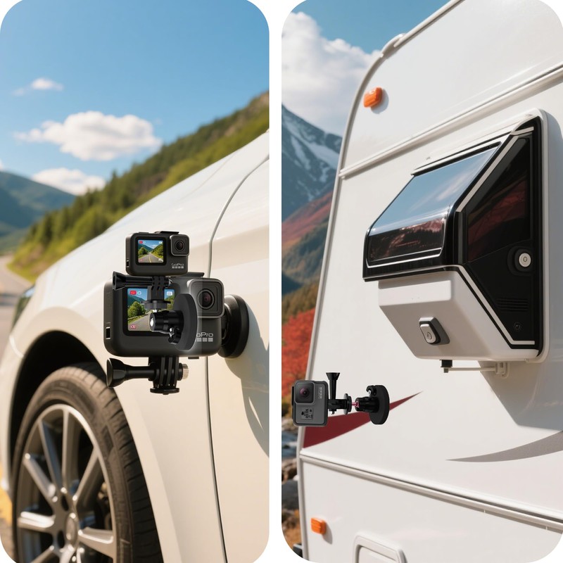 - This magnetic action camera mount securely attaches to car roofs, hoods, trunks, or seat frames, making it ideal for capturing dynamic shots during vehicle rides, boating trips, jet ski adventures, and other outdoor activities