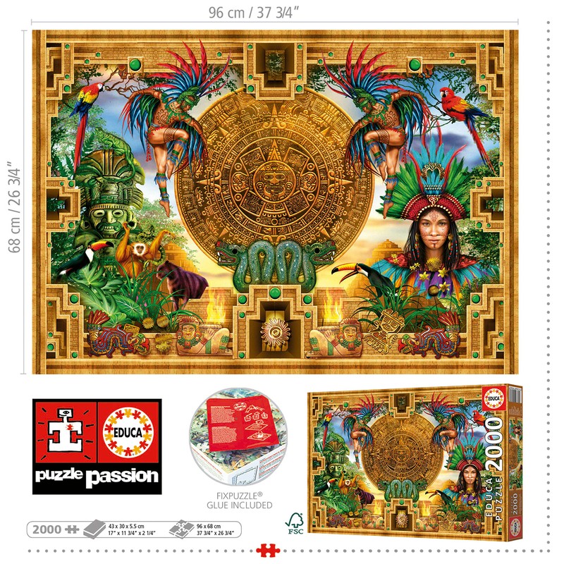 Educa - Aztec Mayan Montage - 2000 Piece Jigsaw Puzzle - Puzzle Glue Included - Completed Image Measures 37.79" x 26.77" - Ages 14+ (19565)