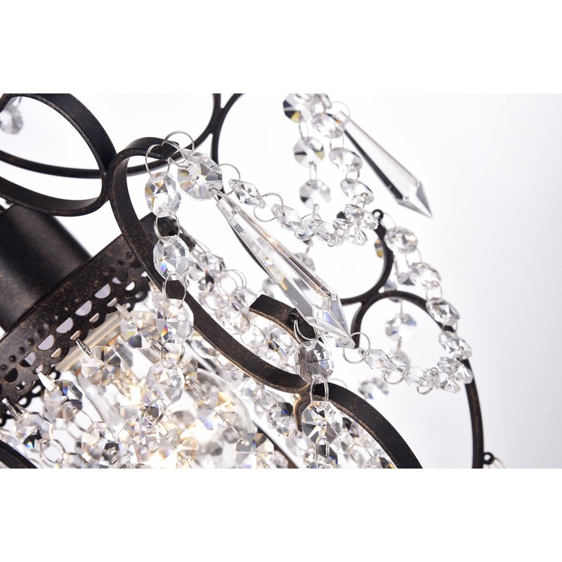 - This gorgeous mini chandelier adds elegance to even your small spaces. Strands of intertwining dazzling crystals mix with the antique bronzed hardware and surround the single bulb to make this compact beauty a focal point It is 15 inches high and comes with a 39-inch adjustable chain.