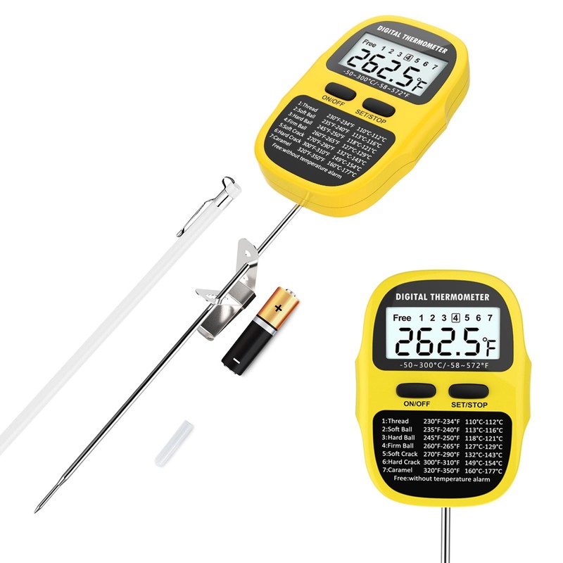 Efeng Waterproof Programmable Digital Candy Thermometer for Candy Making with 9.5" Probe, Alarm Function, Rotatable Large Display for Candy Making, Meat Cooking,Sugar, Liquid Making (Yellow)