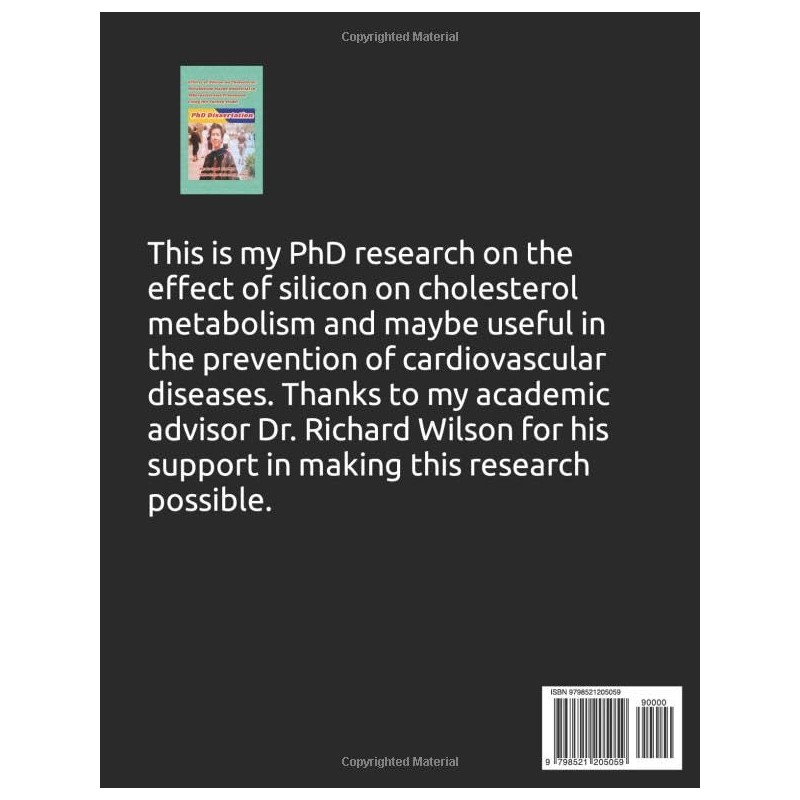 This was my PhD Dissertation when I was pursuing my PhD degree at Ohio State University in 1984. This was my research report on the beneficial effects of silicon on the prevention of atherosclerosis which was the major cause of cardiovascular diseases.