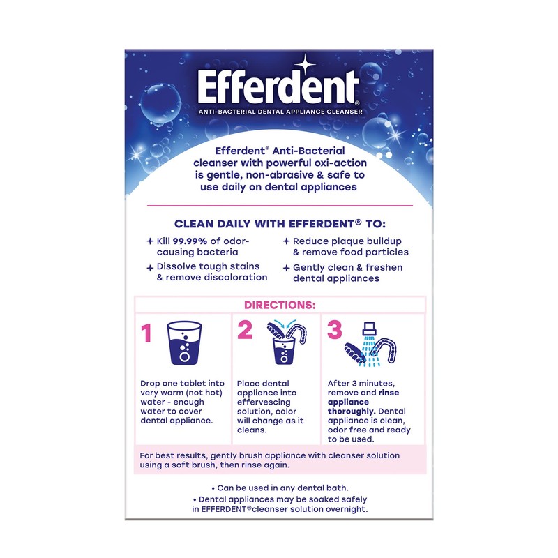 dental appliances. Using its powerful effervescent cleaning action, it kills