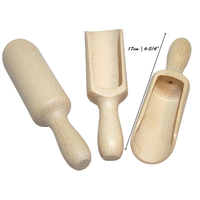 efo Large Wooden Scoop Set of 3 – Rustic Bathsalt Scoop - Multipurpose Wooden Spoon - Wood Salt and Spice Scoops – Stylish Wooden Candy Spoon - Washing Powder Scoops - Size 17cm (6.7") (C5)