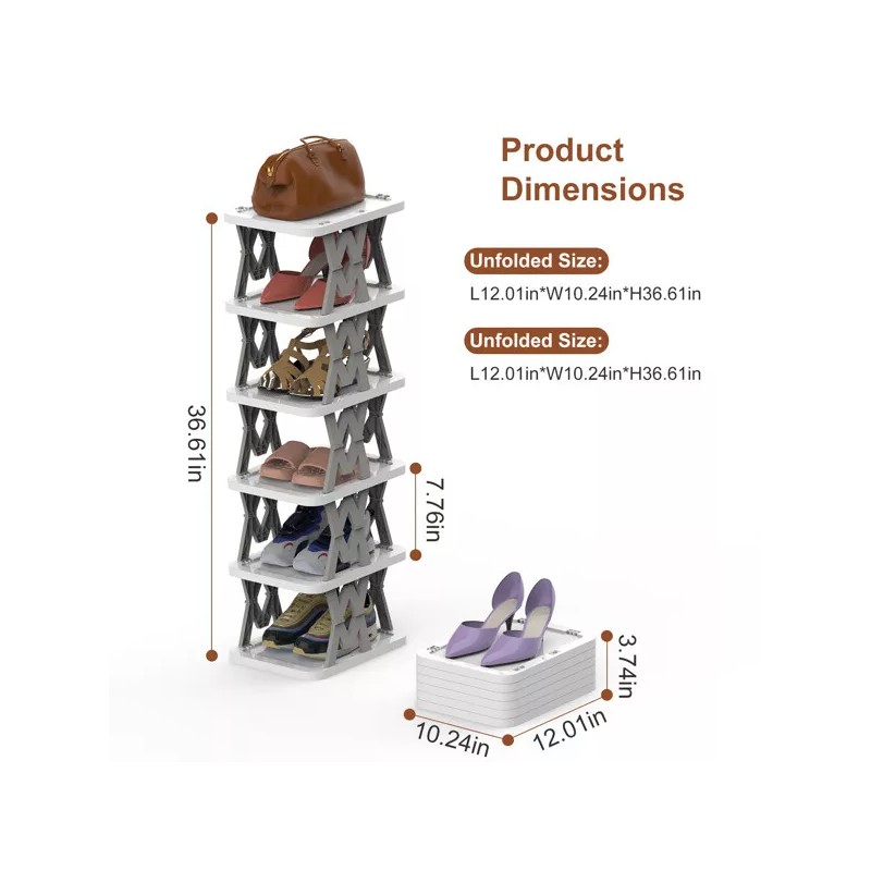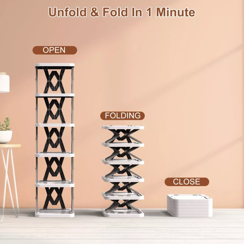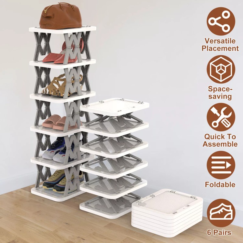efunmodern 6-Tier Shoe Rack Vertical Storage Organizer Small Shoe Rack Narrow Space Saving
