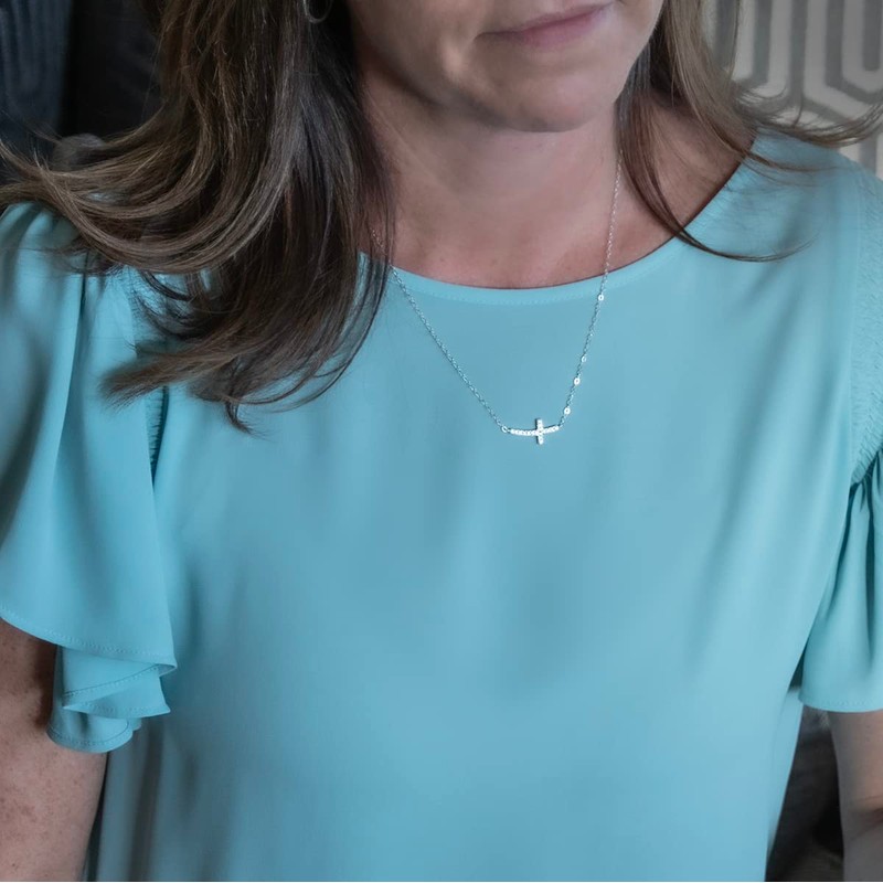 EFYTAL Christian Gifts for Women, CZ Sterling Silver Sideways Cross Necklace for Women, Confirmation Gifts for Teen, Spiritual Gifts for Women, Religious Gifts, Baptism Gifts, Faith Gifts