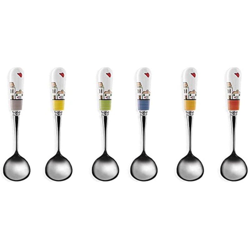 Egan Spoons with Colourful Handles, 15 x 2.3 x 1 cm, Set of 6, Multi-Colour, Small