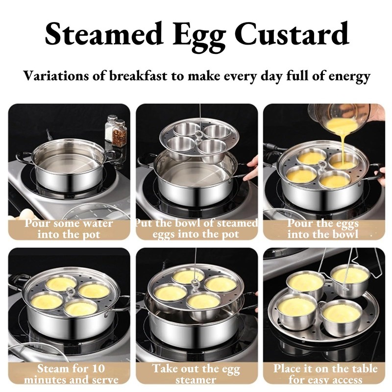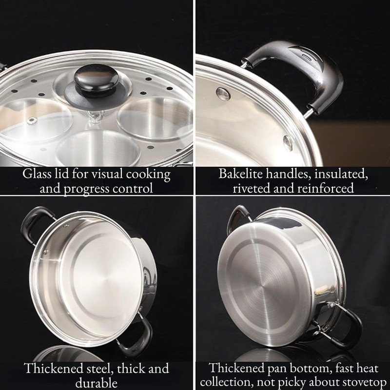 Multifunctional Egg Poacher Pan: Our egg poacher pan stands out with its superior stainless steel non-stick cooking surface, as well as the independent insert cups that can be easily removed for quick cleaning or placed in the dishwasher. It can also be used as a regular cooking pot by removing the egg cups, offering a sleek and elegant design for a stylish addition to your kitchen. Quality Materials and Performance: Unlike delicate egg poacher pans on the market, our deluxe pan is made of sturdy, heavy-duty stainless steel suitable for all stove types, including induction cooktops. The premium bottom eliminates hot spots and provides rapid, even heat distribution, ensuring perfectly cooked eggs every time. Quality Product Details: This egg poaching pan features a high-quality glass lid for visual cooking and a comfortable wooden handle with heat-resistant rivets. The thickened bottom ensures fast and even heat conduction, making it a versatile addition to your kitchen cookware. Enhanced Large Capacity Egg Poacher Pan: From Benedict eggs to egg bites, our deluxe egg poacher pan allows you to prepare up to 4 perfect poached eggs, helping you start your day in the right way and enjoy a delicious and healthy breakfast with ease. 2-in-1 Multi-Purpose Cooker:The independent insert cups are made of high-quality polished stainless steel, making them easy to clean and dishwasher safe, allowing you to focus on your day without spending extra time cleaning up. With the ability to switch from an egg poacher to a cooking pot, our deluxe poaching pan proves to be a versatile and stylish addition to your cooking arsenal.