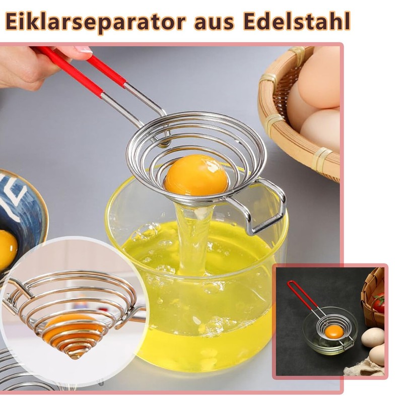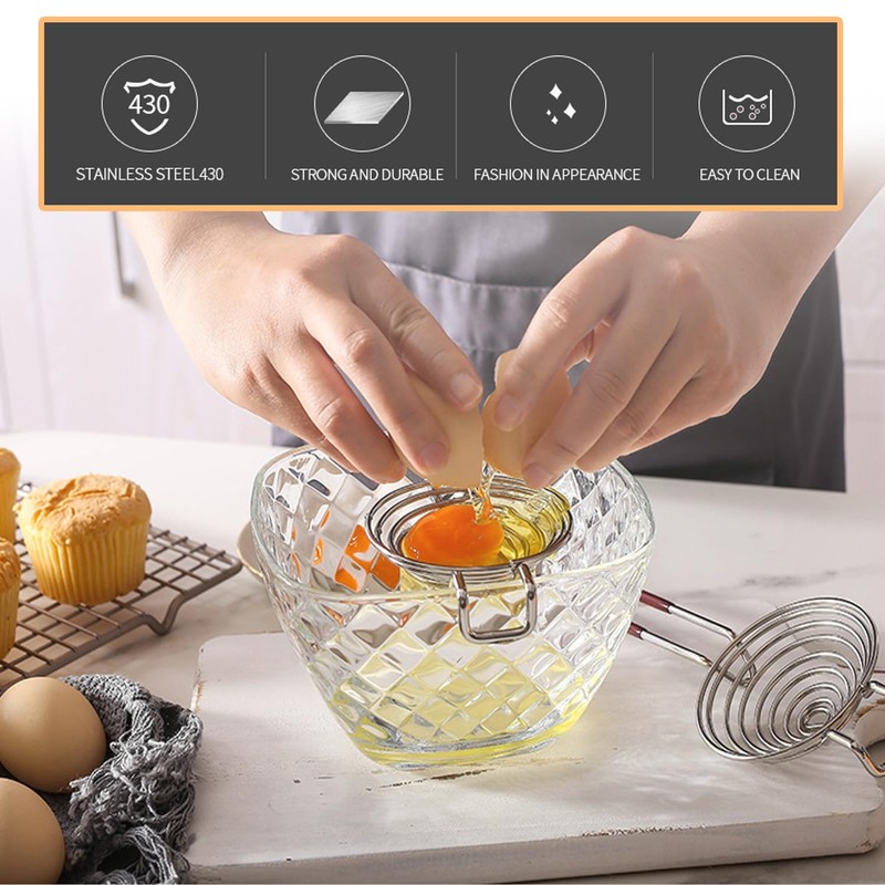 - Spiral design: egg yolk separator is made of spiral structure, hanging ear design, easy to use, all-round filtration, can separate protein and yolk faster.