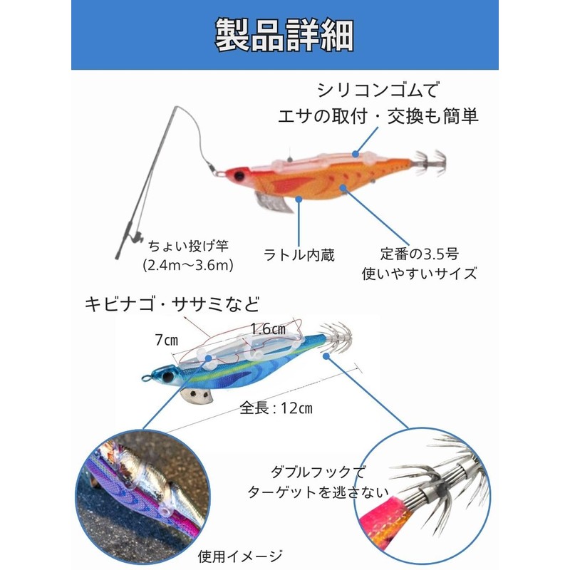 (Classic Size 3.5 for Easy Use) Uses a versatile size 3.5. The standard size is useful during the spring and autumn eging seasons, with a good balance of distance and sinking speeds, it can be used in a wide range of fields, such as oceans, beaches, embankments, and boats. It is easy to handle changes in tide, and provides a satisfying experience for beginners and advanced users.