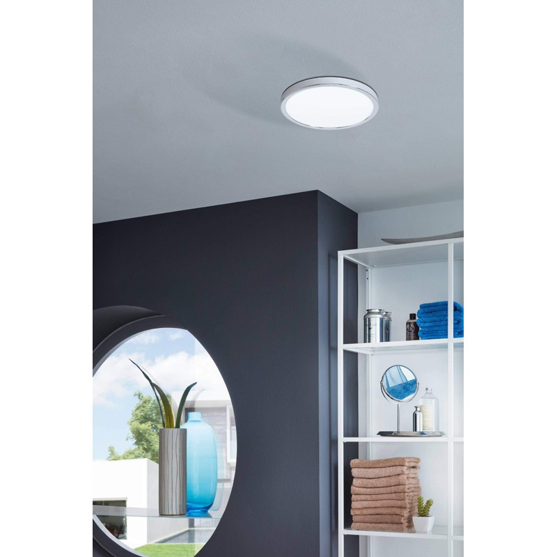 - This round LED light fixture made of metal in chrome colour with its white plastic LED cover is splash-proof (IP44) and fits seamlessly into the modern trend