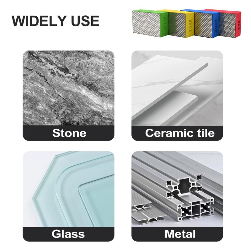 - Widely UseCan be used in both dry and wet polishing. The sponge backing is absorbent. Work greatly for glass working, wood deburring, metal dedusting, stone polishing, tile, granite, ceramics, and other polishing. Easily and quickly solve the problems such as chipping, burrs, and edging in your life.
