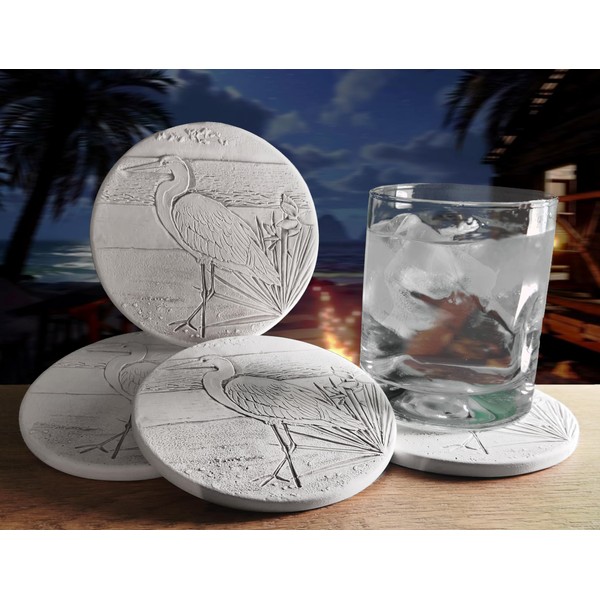 Egret Absorbent Drink Coaster set - Handmade by McCarter Coasters - 4.38 inch (4pc)