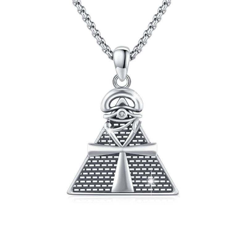 Egyptian Necklace 925 Sterling Silver Eye of Horus Necklace with Ankh Pyramid Pendant Amulet Egyptian Jewellery Gift for Men and Women