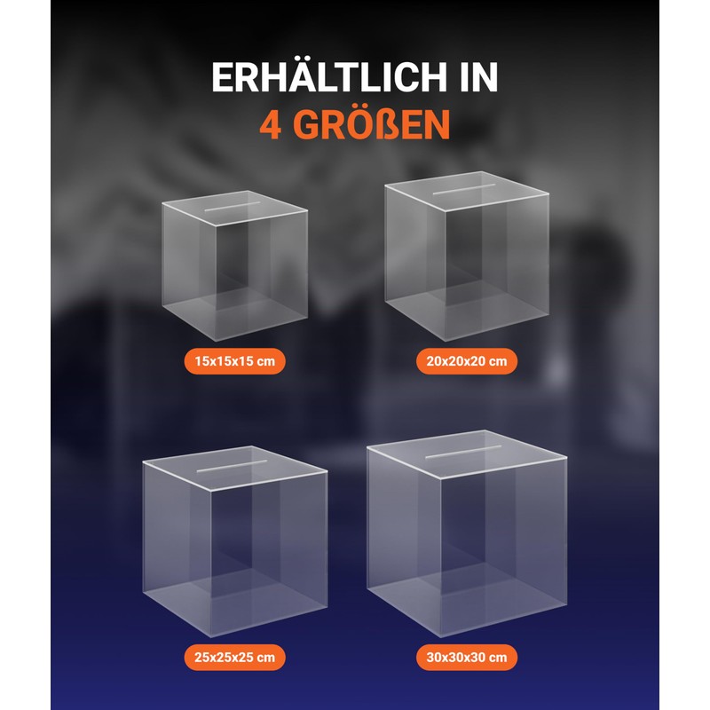- 7x more shatterproof than glass: the robust acrylic glass construction is particularly stable and can withstand even intensive use. Perfect for indoor and outdoor fundraisers.