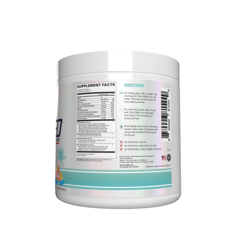 EHP Labs OxyShred Pre Workout Powder - Preworkout Powder with L Glutamine & Acetyl L Carnitine, Energy Boost Drink - Bahama Breeze, 60 Servings