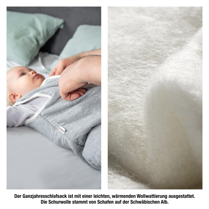 - Safe and secure, 100% natural – the year-round baby sleeping bag is made from 100% natural materials. Baby sleeping bag is highly functional, completely biodegradable and mulesing-free.