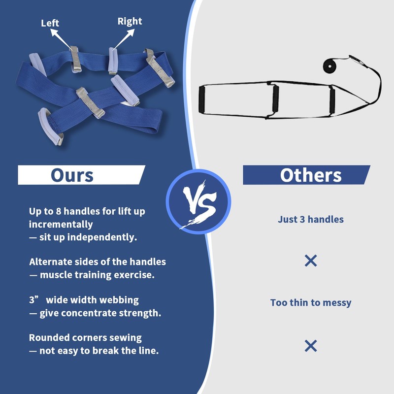 • Compared with most bed ladder straps on the market, the Ehucon bed ladder assist pull up adopts a widened design. The 3-inch wide bed ladder strap prevents the bed ladder from being cluttered and makes it easier to organize. And the 3-inch wide webbing of the bed ladder assist provides concentrated strength for weak users, making it easier to sit up from the bed alone.