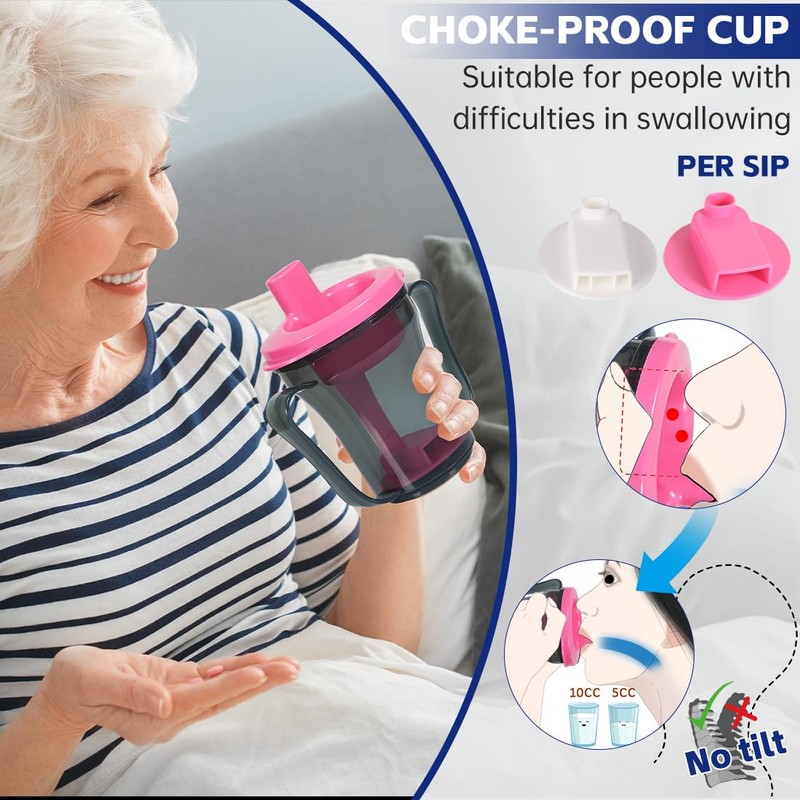 • This Dysphagia Cup is Not a Sippy Cup:Using it as a sippy cup will make it hard to suck water, which is incorrect. Correct Usage: Simply raise the cup to drink a fixed amount of water