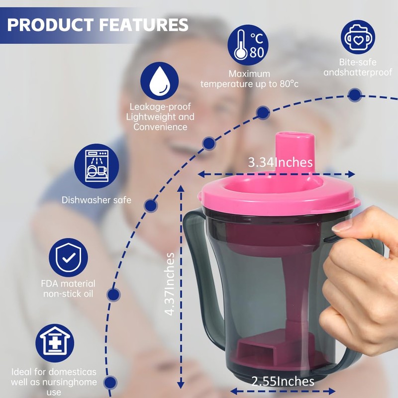 • Dishwasher safe: This dysphagia cup is non-stick oil, bite-safe and shatterproof , also dishwasher safe . It is ideal for domestic and nursing home use. Be careful not to dry above 80 degrees