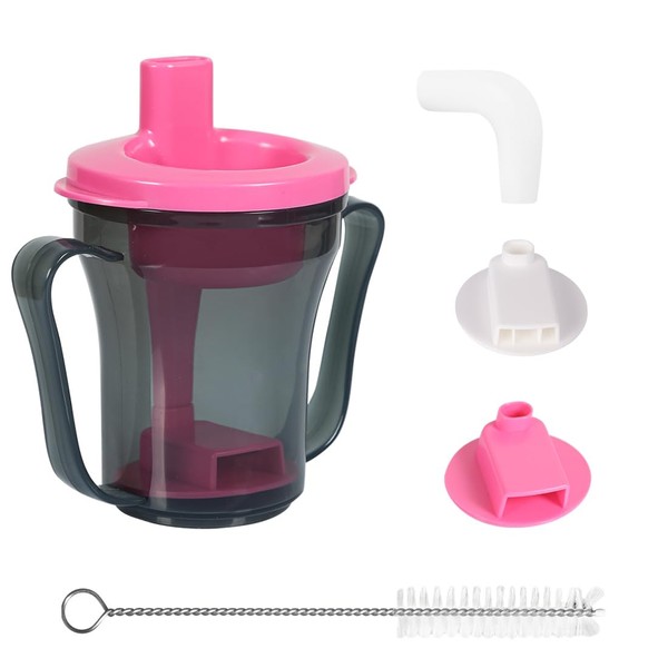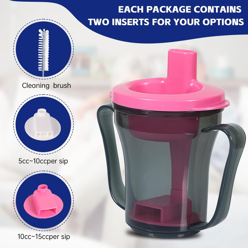 Ehucon Dysphagia Regulating Drinking Cup,include 5cc and 10cc sip cup (Clear Grey Body Cup& Cherry Pink Lid)