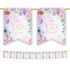 Eid Mubarak Bunting Decorations (Floral Pastel Watercolour Design) - Happy Eid Mubarak Banner, Bunting Flags Hanging Decor for Home Domes Lanterns Moon
