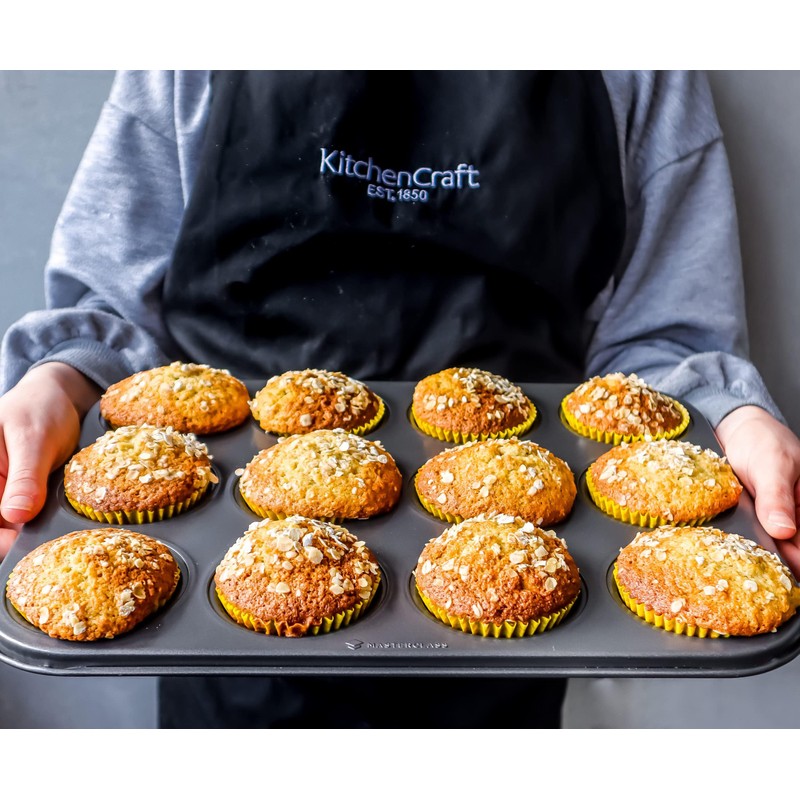 The Master Class 12-Hole Non-Stick Cupcake Tray / Baking Pan is your ticket to delicious batches of cupcakes, muffins, buns and fairy cakes that look fantastic too!Generally the muffin tins are made of aluminium, stainless steel, cast iron or silicon but this muffin tin is made of carbon steel that is more reliable and useful. Every cup of muffin tin is coated inside out with a non-stick material.