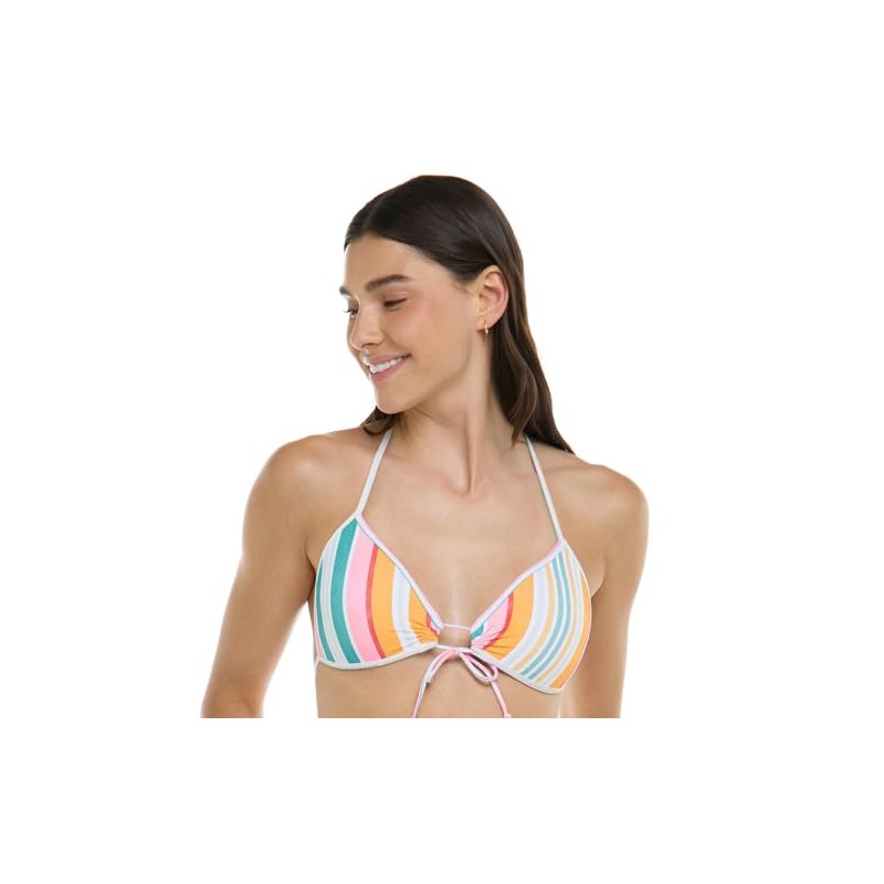 Eidon Women's Standard Summer Molded Cup Push Up Triangle Bikini Top Swimsuit, Santo Domingo Stripe