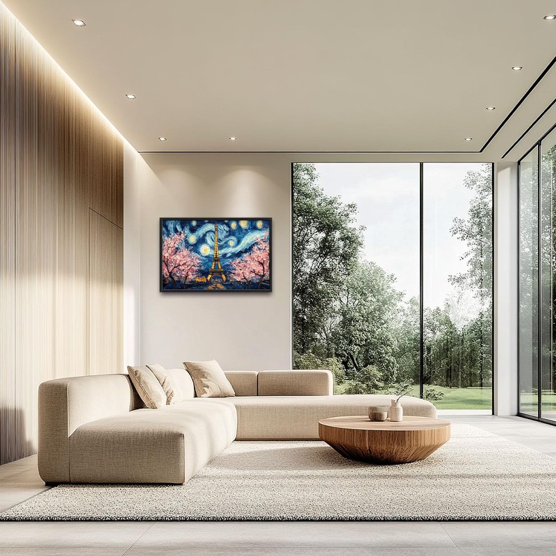 Eiffel Tower Large Wall Art Paris Cherry Blossom Pictures Wall Decor Landmark Landscape Canvas Starry Sky Print Painting Modern Artwork Home Decoration for Living Room Bathroom Bedroom Office Framed 24"x36"