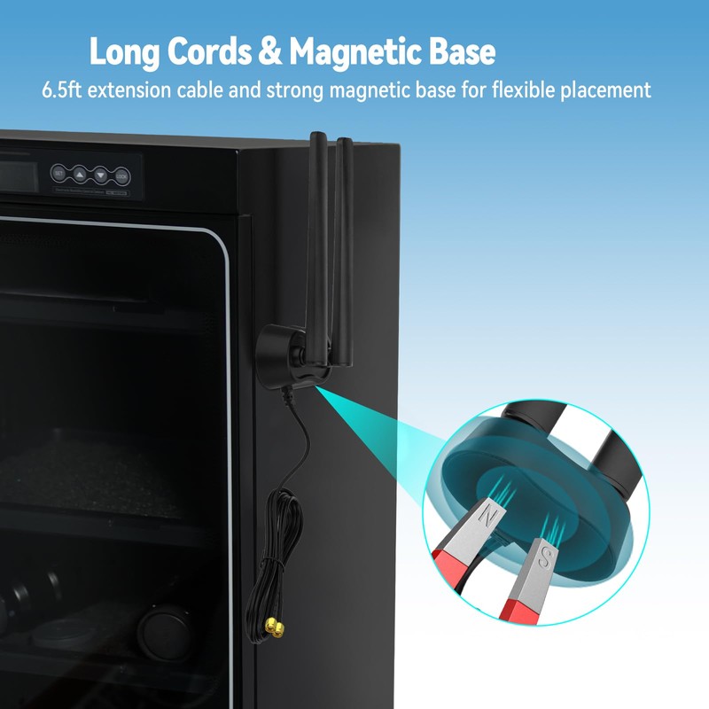 - Flexible Placement: the 6.5ft cords provides flexibility to position the antenna in the optimal signal location, while built-in magnetic base securely attaches to any steel surface for hassle-free installation