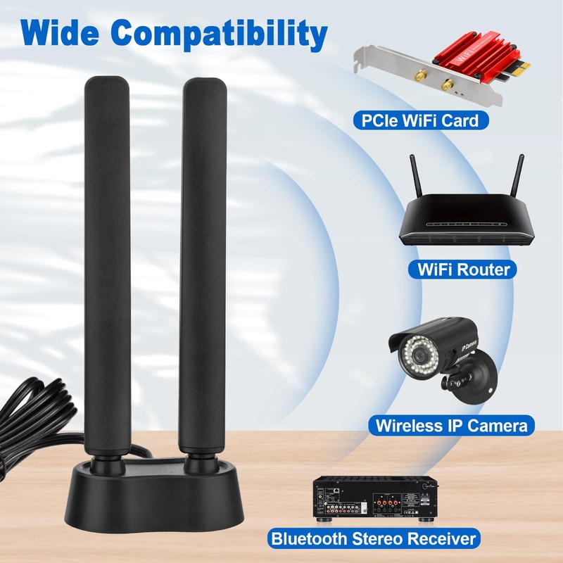 - Tri Band WiFi Connectivity: the antenna supports three bands-2.4G(2400-2500MHz),5G(5150-5850MHz), 6G(5900-7125MHz) along with compatibility for 802.11 b/g/n/ac/ax/wifi 6/wifi 6e