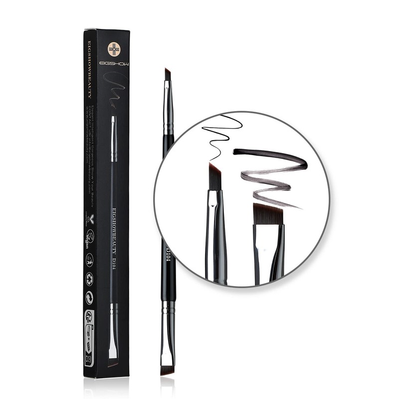 EIGSHOW 2-in-1 Eyebrow Brush & Eyeliner Brush Professional Double End Eyebrow Brush Eyeliner Brush Beveled Flat Brush (Black)