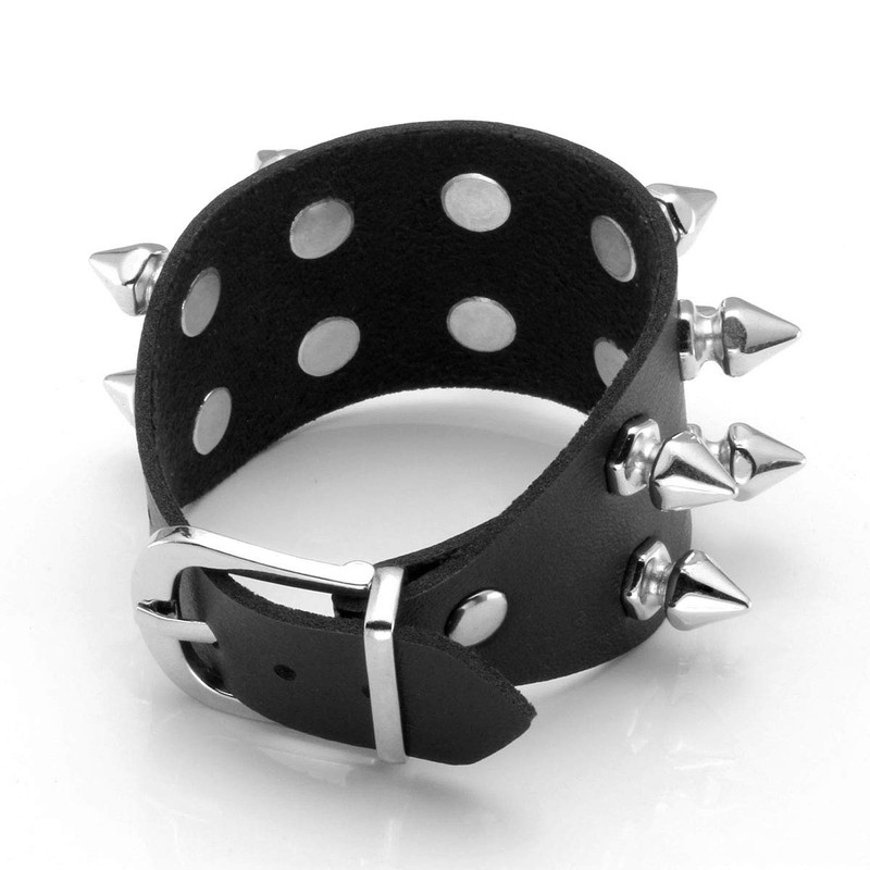 Eigso Punk Rivets Soft PU Leather Bracelet with Spike and Clasp Wide Bracelet for Men and Women, Leather