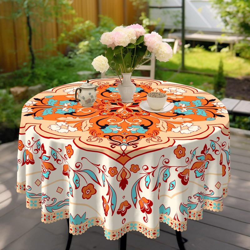 Eikione Bohemia Round Tablecloth 60inch,Table Cloth Waterproof and Wrinkle-Free, Boho Table Covers, Summer Decorations for Home