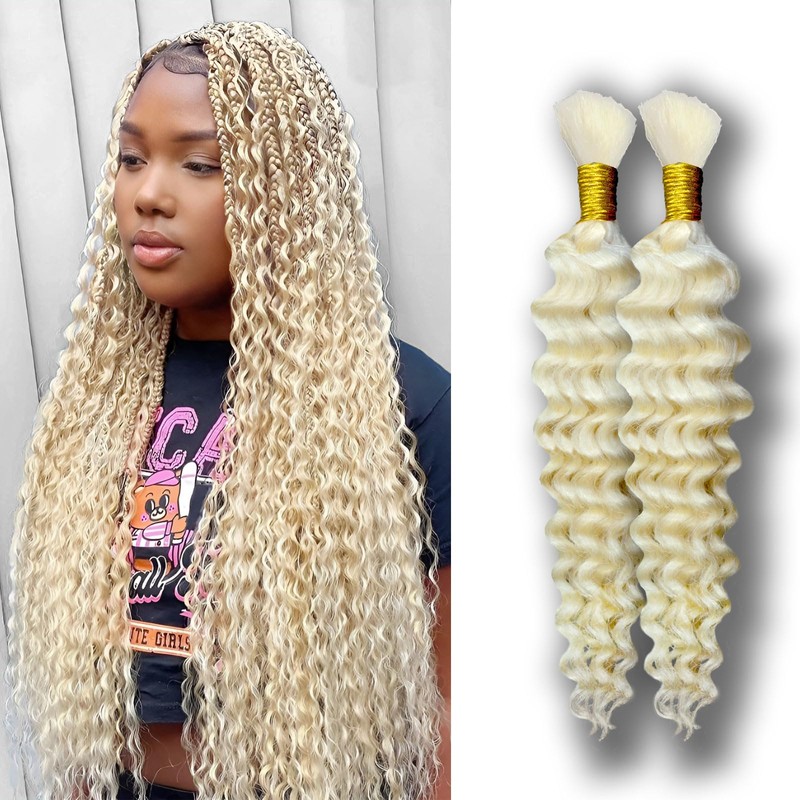 Eileen 613 Blonde Human Braiding Hair 18 Inch 100g 2 Bundles Deep Wave Bulk Human Hair for Braiding Curly Human Hair for Boho Braids Water Wet and Wavy Curls Micro