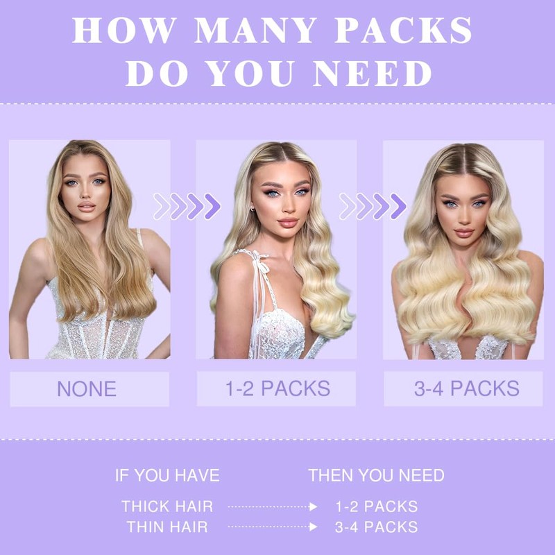 - Specification: 20 pieces, 14-24 inches (40-50 g) available. For the best hair styling effect, we recommend you buy 3-4 packs at a time.