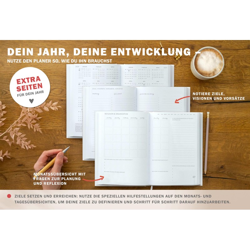 - Special plus: our pocket calendar without date binding is your holistic planning tool. Planned fields for wishes, goals, energy levels, thoughts and self-reflection make the planner a valuable personal companion. With our small impulses for gratitude and mindfulness, you can navigate calmly and relaxed even through turbulent times